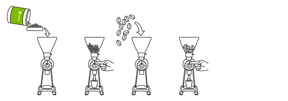4, To season burrs, repeat above process once with one capful of coffee beans.